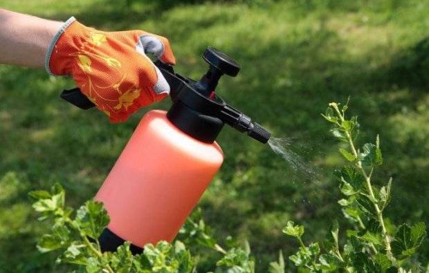 Обприскування ягідних кущів і виноградної лози здійснюють до початку появи квітконосів, а також після збирання врожаю. Під час наливання ягід обробка заборонена. Швидке дозрівання не дає можливості повністю нейтралізуватися всіх речовин, небажаних для потрапляння в їжу.