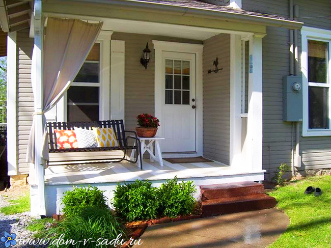Багато однорічних квітів в кашпо – петуній, чорнобривців зроблять ваше ганок місцем для насолоди вечірніми фарбами. Багато садових меблів використовувати не потрібно. Досить крісла, гойдалки, плетеного з ротанга дивана або креативних садових гойдалок.