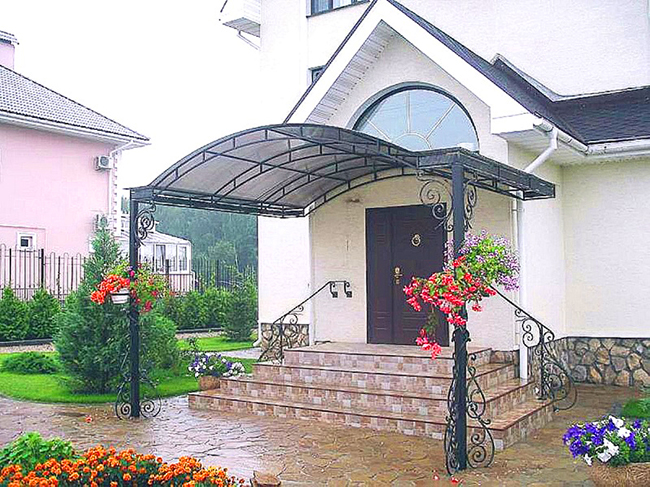 Коване ганок і навіс з полікарбонату – стильно, красиво і довговічне.
