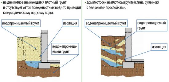Для підвищення ефективності гідрозахисту необхідно знати структуру ґрунту на ділянці. Пісковики і супесчанікі є водопроникними грунтами, де волога швидко вбирається в нижні шари, перетікаючи в грунтові води. Суглинки і глинисті грунти характеризуються високою вологоємністю, вони здатні накопичувати в собі великий запас вологи. Вода на таких ділянках може не йти навіть взимку. Спостерігаються процеси здимання, що небезпечно для цілісності фундаменту.