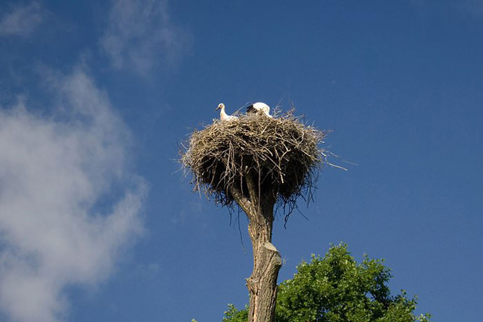 - Гранично уважно треба оглядати гілки під гніздами. Якщо гілка «дихає на ладан», краще спиляти її, спорудивши неподалік аістіний будинок.