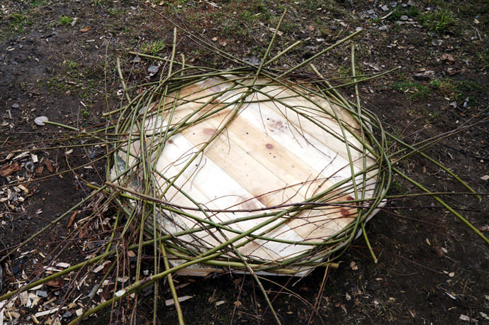 Діаметр основи – не менше одного метра. По периметру обов'язково забивають будівельні цвяхи і кілки, які встануть на шляху гілок, оберігаючи їх від зісковзування.