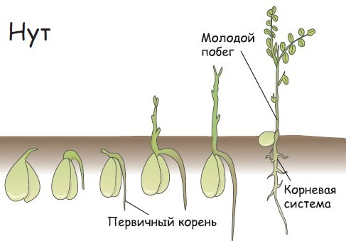- оптимальні температурні показники грунту для проростання насіння нуту становлять близько 13-14 ° С;