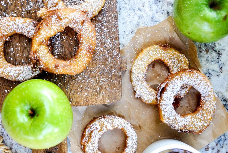 Як часто нам з вами хочеться чашечку чаю з чимось смачненьким і бажано не покупним, а домашнім. Ось я і вирішила поділитися з вами рецептом дуже смачного яблучного десерту, точніше сказати рецептом приготування яблучних кілець з корицею в ніжному клярі, обсмажених у фритюрі. Готувати це частування зовсім нескладно, а значить, ми можемо зробити його і до сімейного сніданку, і до несподіваного дружньому чаювання для приємній компанії. До речі, для тих хто вважає енергетичну цінність навіть у таких вкусностях, повідомляємо що в 100 грамах готового продукту містяться 206 кілокалорій.