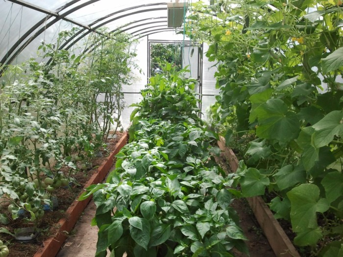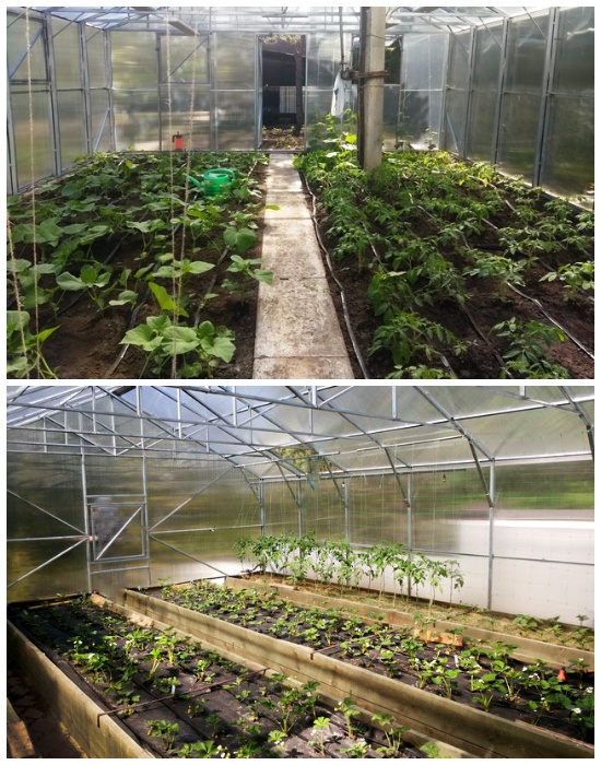 Рослини в теплиці можуть бути висаджені безпосередньо в грунт або на облаштованих грядках.