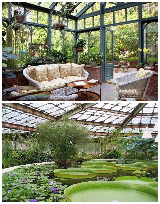 Оригінальні варіанти оформлення заскленої альтанки-оранжереї.