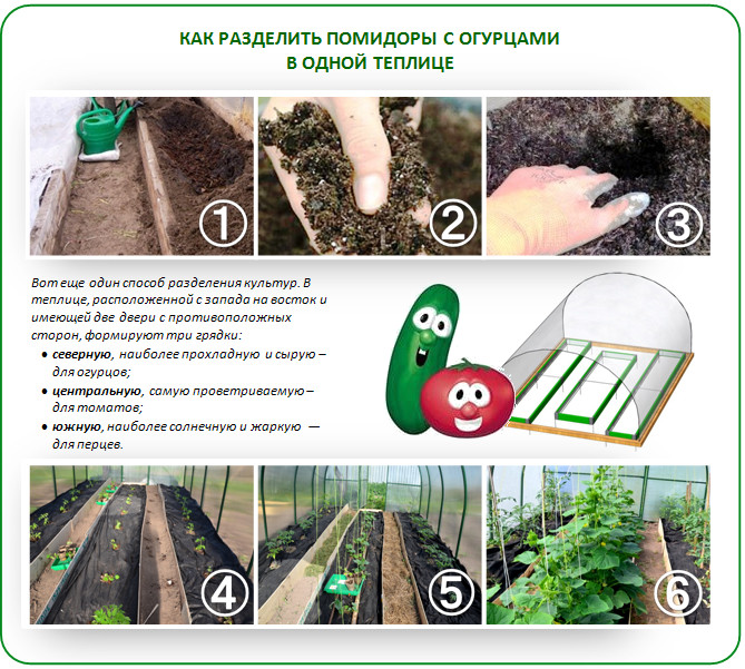 Варіант поділу рослин огірків і помідор в одній теплиці.