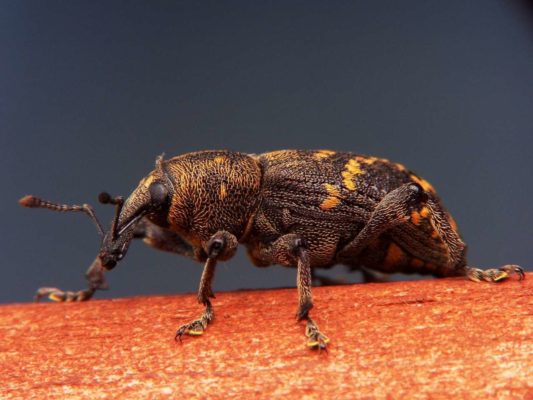 Це невеликий жук-довгоносик, що зимує в верхніх шарах грунту. Ранньою весною заповзає на крону дерева. Через деякий час самка прогризає квіткові бутони біля основи і відкладає в них по одному яйцю. Через тиждень з'являються личинки, які, не виходячи на поверхню, поїдають внутрішню м'якоть квітів. Для уникнення цієї неприємності ранньою весною обробляють крону Днок або нитрафеном, а перед цвітінням – фуфанон, як це зазначено в переліку профілактичних заходів. Після цвітіння обробку повторюють.