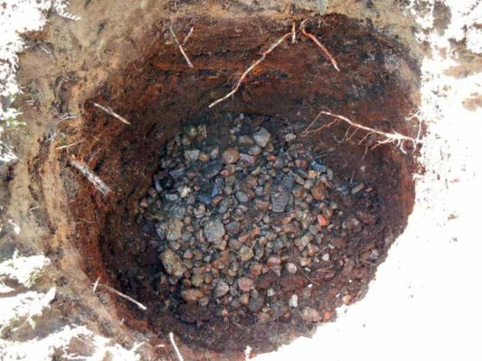 У разі, якщо грунт важкий, на дно слід укласти дренаж з керамзиту, щебеня, битої цегли