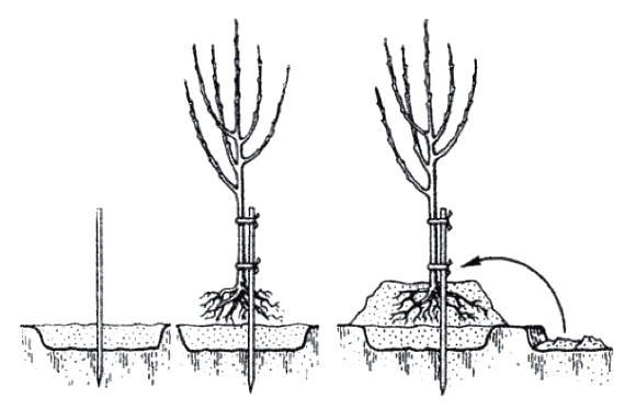 - Саджанець НЕ заглиблюють – місце, в якому корінь переходить в стовбур, має залишитися на 6-8 сантиметрів над грунтом.