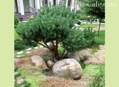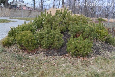 Групова посадка з карликових сосен і в зимовий час зберігає свою декоративність, стійко переносить морози і вітряну погоду. А влітку на тлі свіжого газону молоді пагони сосен заграють яскравими фарбами