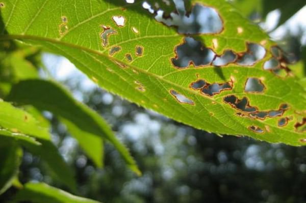- Слизистий пильщик на листках знищується розчином карбофосу, але вже в концентрації 10%.