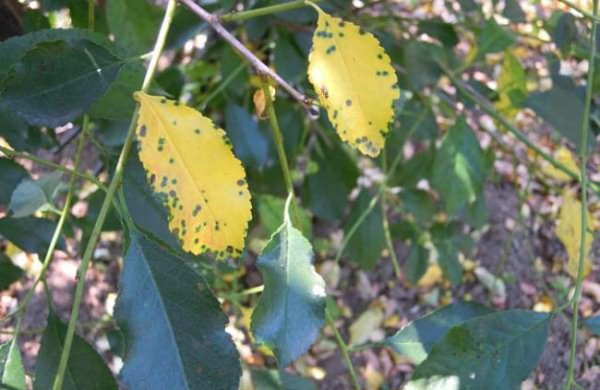 - основні ознаки ураження проявляються у формі появи дрібних плям бурого фарбування на верхній листової пластини. З нижнього боку листа спостерігаються рожево-білі подушечки конідіальной грибкових спор. В останній декаді липня доросла рослина втрачає більше половини листя, а молоді саджанці можуть бути оголені повністю;