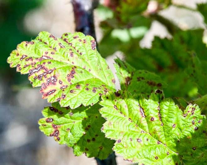 Іржа відноситься до грибкових захворювань малини. Поширена вона повсюдно, активно проявляє себе в умовах підвищеної вологості. Діагностувати іржу можна за наявністю жовтувато-коричневих опуклостей на лицьовій стороні листя навесні і раннім літом. На пагонах захворювання проявляється у вигляді сіруватих виразок з червонуватим контуром. До осені на тильній стороні листя з'являється темний наліт – це спори грибка, підготувалися до зимівлі. Іржа призводить до зниження врожайності і загибелі рослин.