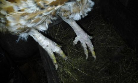 - У пернатих виникає сильний свербіж, особливо вночі. Заражені коростяних кліщів птиці роздзьобують лапи.