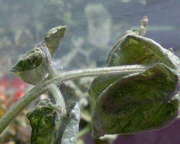 грибкова форма. Хвороба розвивається дуже швидко і може протягом 1-2 діб знищити розсаду помідорів. Може вражати сходи у фазі сім'ядольних листочків, але найчастіше потрапляє в рослини після пікіровки через пошкоджені коріння. А ось від однієї рослини до іншої передається тільки з грунтом.І якщо інші помідори здорові і ростуть в іншому ґрунті, ніж хворий екземпляр, то захворіти вони можуть тільки при розпушуванні одним інструментом хворих і здорових рослин, або при пікіровки здорових томатів в заражений ґрунт.