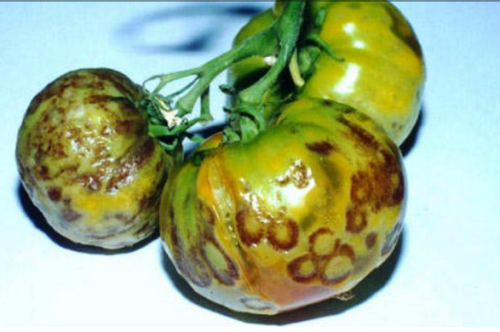 - Південний фітофтороз або оленячий очей виникає при появі заражающего грибка. Коли плід дозріває, то на ньому з'являється темно-коричнева точка, яка, збільшуючись, перетворюється, в подібні за зовнішнім виглядом з мішенню, кола. Якщо вологість підвищена, з'являється світлий наліт на плодах, листках і стеблах. Крім томатів до цього захворювання схильні баклажани і солодкі перці. Так як спори грибка поширюються від землі через бризки води, то в основному заражаються плоди, які знаходяться в безпосередній близькості до грунту. Південний фітофтороз з'являється в теплицях, де присутня надмірна волога.Рішенням може бути все та ж стабільна циркуляція повітря і підв'язування томатних гілочок. Намагайтеся поливати без розбризкування води, а також стелите біля підніжжя куща пластикові або паперові підстилки.
