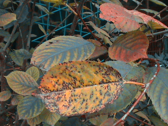 Вишневе листя покриваються червоними плямами. Їх жовта облямівка, нагадує іржу. Звідси таку назву. Верхня сторона листа показує ознаки більш чітко, ніж нижня.