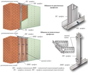 Для цього буде потрібно сам гіпсокартонний лист і кілька профілів: для обробки стіни – спрямовує і стієчний, для стелі – спрямовує і стельовий. А також прямі підвіси і саморізи з дюбелями.
