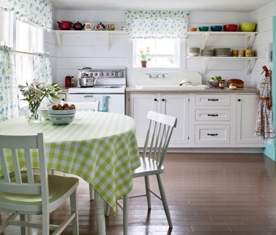 Доповнити інтер'єр кухні можна невеликими автентичними предметами: навісними поличками для посуду, добре збереглися стільцями і табуретами.