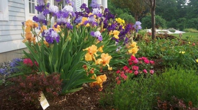 І звичайно, іриси добре вписуються в будь-який простір біля водойми. Ви можете використовувати їх і на клумбі безперервного цвітіння. При цьому пам'ятайте, що іриси розростаються вшир, а значить, при посадці їм потрібно залишити достатню кількість місця.