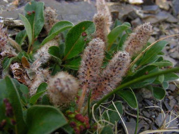 - Альпійська верба зацвітає ще до того, як на ній з'являться листочки. Цей чагарник прекрасно почуває себе на кам'янистих схилах, тому її часто можна зустріти між брилами великих альпійських гірок.