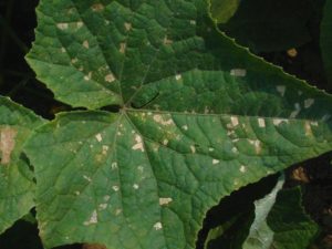 Після збирання основного врожаю, в серпні, в плівкових теплицях півдня Росії починають виявлятися перші симптоми.