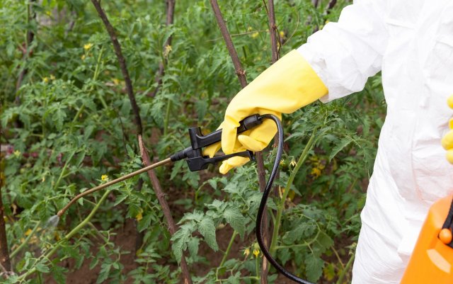 У період вегетації обприскуйте посадки Абіга-Піком, Консент, Ревус або іншими фунгіцидними препаратами за інструкцією. Через кожні 10 днів процедуру повторюйте. Така профілактична обробка помідорів від фітофтори допоможе попередити початок захворювання. Тільки не забувайте використовувати під час обприскування засоби індивідуального захисту і не перевищуйте норми препаратів. Для приготування розчинів використовуйте будь-який посуд, крім металевої, тому що вона вступає в хімічну реакцію з компонентами препаратів і може знизити їх ефективність.