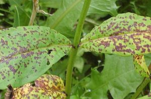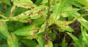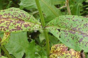 Це вірусні захворювання, які вражають листя рослин. На поверхні листової пластини з'являється темно-бура, округла плямистість. Згодом плями зливаються, вражаючи всю листову пластину. На запущеній стадії листя рослин починають скручуватися і відмирати, а кущі слабшають, перестають цвісти і гинуть.