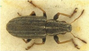 Найчастіше на посадках даної агрокультури зустрічаються смугасті і щетинистий довгоносики, їх довжина 4-5 мм. Відмітною ознакою першого паразита є поздовжні смужки на надкрилах, а другого – наявність волосинок по верхньому краю очей. Забарвлення округлих яєць чорний, личинки білі розміром не більше 5 мм. Шкода агрокультурі наносять личинки, які харчуються корінцями.