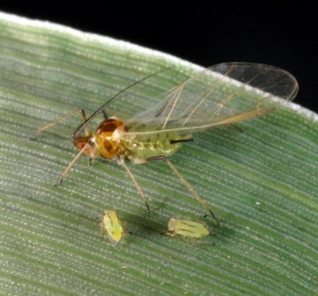 Осівши на трав'янистих рослинах, шкідник харчується на них до кінця літа. Тут знову відроджуються кілька безкрилих поколінь. На початку осені з'являються крилаті самці і самки, відбувається процес статевого розмноження. Швидкість цього розмноження, в порівнянні з партеногенезом, дуже маленька, але саме це потомство переносить зиму і починає новий цикл розвитку.