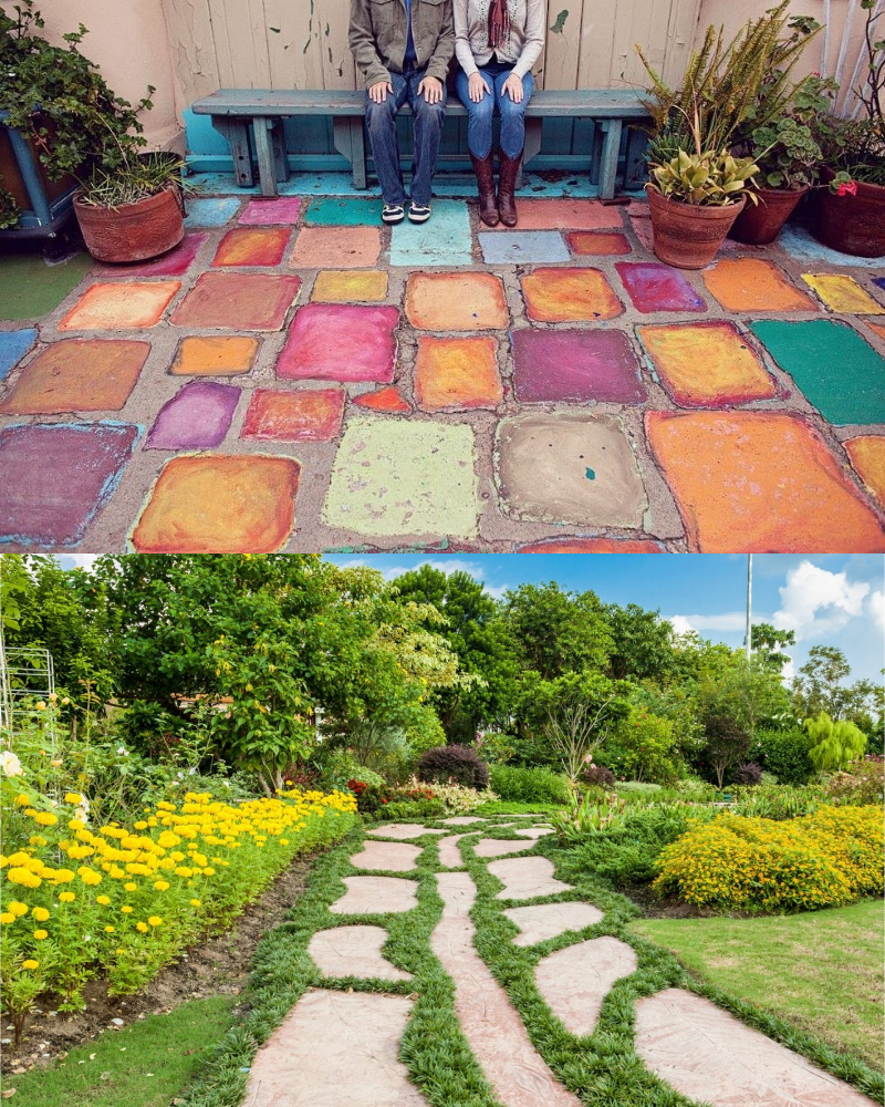 Будь сміливіше в експериментах: використовуй різні за кольором і фактурою матеріали, комбінуй і викладай їх різними способами. Навіть доріжка з нудних сірих бетонних плит не тільки збереже практичну цінність, а й може стати красивою.