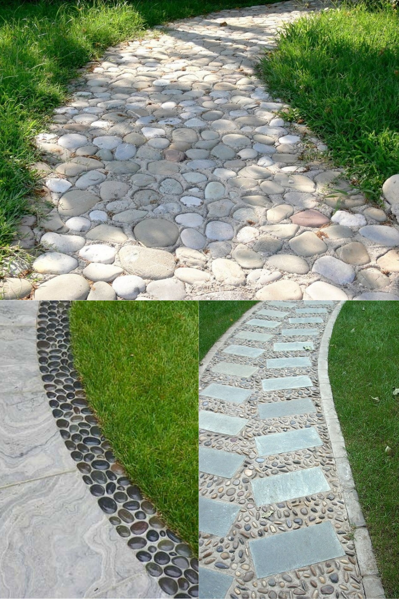 Змінюючи обриси мозаїки і звичайного мощення на доріжці, ви зможете створювати різний за складністю візерунок. Комбінування матеріалів дуже стильно вписується в обстановку з природними і штучними об'єктами.
