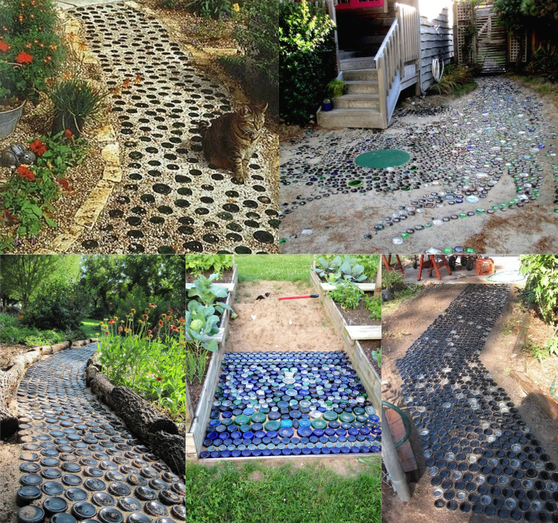 Пляшки зі скла використовуються в якості альтернативного дешевого матеріалу. Їх розташовують догори дном, вбиваючи в грунт. Це дуже незвично і яскраво виглядає, а також дозволяє створювати різні орнаменти.
