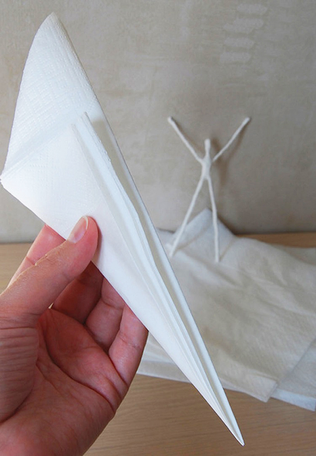 3. Тепер з білі серветки будемо робити пачку. Щоб спідниця вийшла пишною, складіть серветку так, як зазначено нижче.