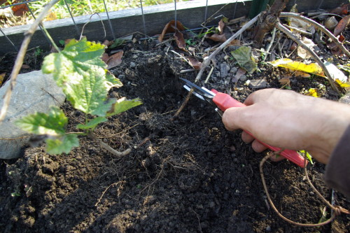 - Пагони посадженого куща потрібно вкоротити на 20 см. Над рівнем грунту залишають 3-4 бруньки. Чим слабкіше гілки, тим більше їх вкорочують.