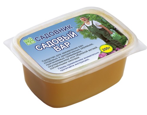 Область зрізу обробляють садовим варом. Його можна придбати в спеціалізованих точках продажу або приготувати самостійно. Зробити це можна за допомогою декількох рецептів.Для приготування складу першим способом вам буде потрібно: