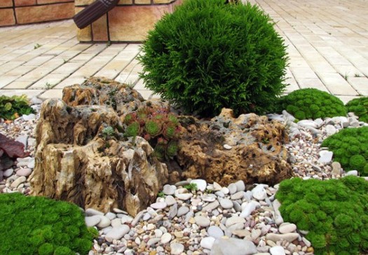 Прекрасно виглядатимуть тут висаджені хвойні дерева або чагарники, маленьких розмірів, тобто карликові, які не будуть сильно привертати увагу оточуючих.