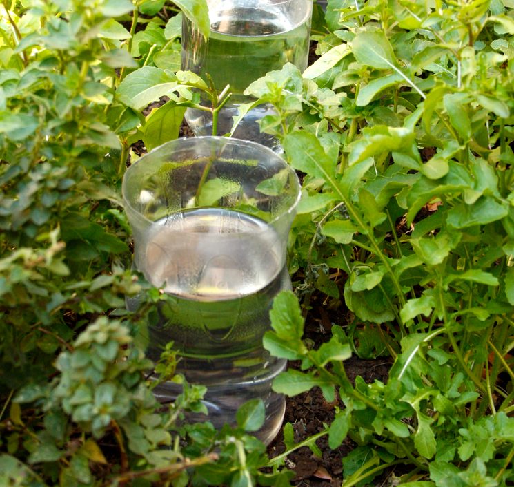 З цією метою необхідно вирити 15-20-сантиметрову ямку, в яку помістити пляшку догори дном (закриту на пробку, в якій ви раніше насверліл відповідних отворів, що дозволить воді витікати повільно). Радіус зволоження такий пляшкою – 15-20 сантиметрів. Поглибивши підготовлену пляшку, присипати її грунтом і ущільнити. Залишається підняти підрізати дно, залити воду, і протягом 3-4 днів вона буде виробляти крапельний полив.
