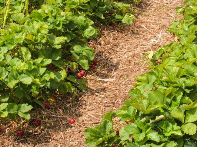 Дуже важливо мульчувати рослини, без цього великий урожай полуниці неможливий. Дивовижно для мульчування полуниці підходить хвоя, вона виконує ряд корисних функцій: утримує і зберігає вологу, захищає рослини від хвороб і шкідників, а також, на протязі довгого періоду часу сама перегниває і удобрює полуницю. Якщо немає можливості дістати хвою і вкрити грунт їй, то можна використовувати для цих цілей сіно, скошені рослини, а також зрізані бур'яни. Восени це можуть бути опале листя або навіть віддалені пагони самої полуниці.