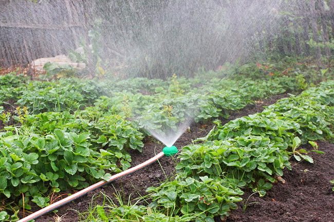 Якщо полуниця буде мульчувати – це значно спростить історію з поливом. Полуниця дуже любить воду. Рекомендується здійснювати рясний полив навесні, коли кущики тільки починають своє формування, в період цвітіння (важливо знати, що в момент цвітіння потрібно максимально акуратно поводитися з рослинами, поливати тільки під корінь, для того, щоб не облетіли драгоценнее бутони), а також в період плодоношення і осінь.