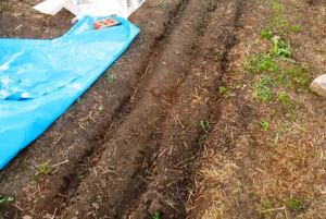 Потім зробіть канавки для посіву або посадки. Самі канавки (борозенки) повинні мати глибину 1-4 см (в залежності від садимо рослин). Тільки для посіву цибулі-порею глибина борозенки збільшується до 10-15 см.
