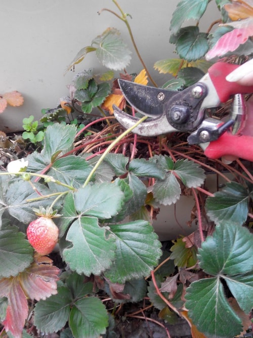 Ще серед садівників є дивна традиція – скошувати листя суниці восени. Нібито такий агрозахід допомагає зменшити популяцію довгоносика, ну і навесні, при появі молодих листочків, грядка буде виглядати охайно. Бррр, шкода такі кущики. Як показує досвід, листя ні в якому разі зрізати не можна! Ні стару (пожовклу-почервонілу), ні молоду – вона захищає коріння суниці взимку від промерзання, це раз. І затримує сніг на грядці при сильних поривах вітру, це два.
