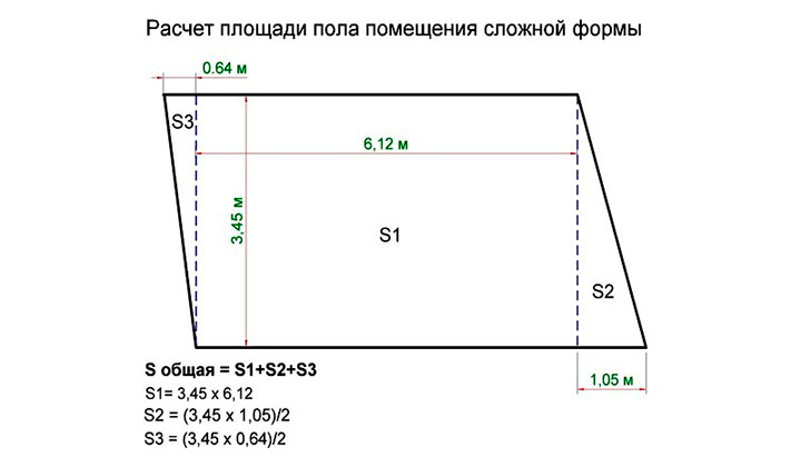 Порада. Житло навіть найскладнішої хитромудрої форми можна розбити на елементарні фігури, знайти їх площі окремо за допомогою відомих з геометрії формул, а потім просто приплюсувати дані.