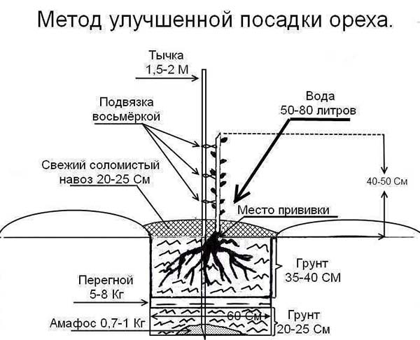 Покрокова інструкція посадки саджанця волоського горіха у відкритий грунт (по Киктенко):