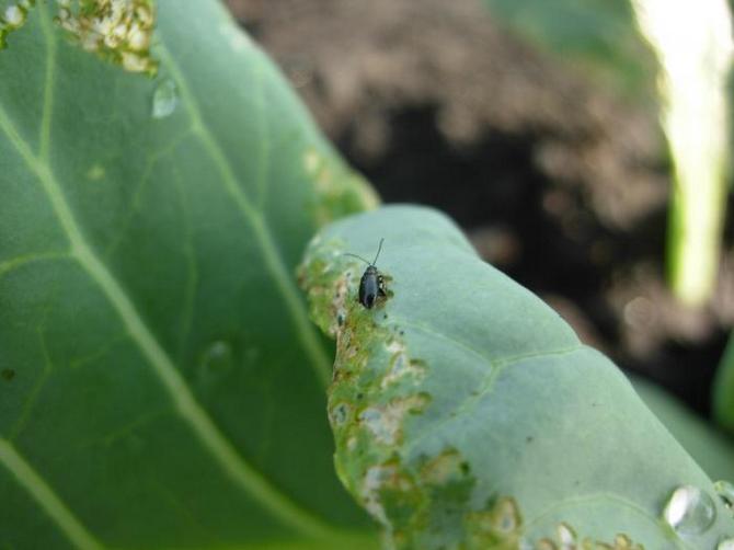 Це маленьке стрибуче комаха дуже любить харчуватися ніжними капустяним пагонами. Найбільше її приваблює пекінська капуста. Цей шкідник здатний протягом дня з'їсти в кілька разів більше, ніж він важить сам. Можна тільки уявити, з якою швидкістю блошка поглинає і псує листя. Як тільки вона з'являється на овочевих грядках, все листя виглядають як решето. Якщо не вживати ніяких заходів, то всього за кілька днів капуста почне гинути.