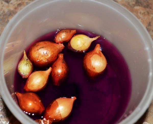 - Севок замочується в марганцево розчині. Марганець потрібно додати в холодну воду, в результаті чого вийде слабкий рожевий розчин. Витримати в ньому цибулю 15 хвилин. Відмінна підготовка, особливо в тому випадку, якщо немає часу або можливості підігрівати воду.