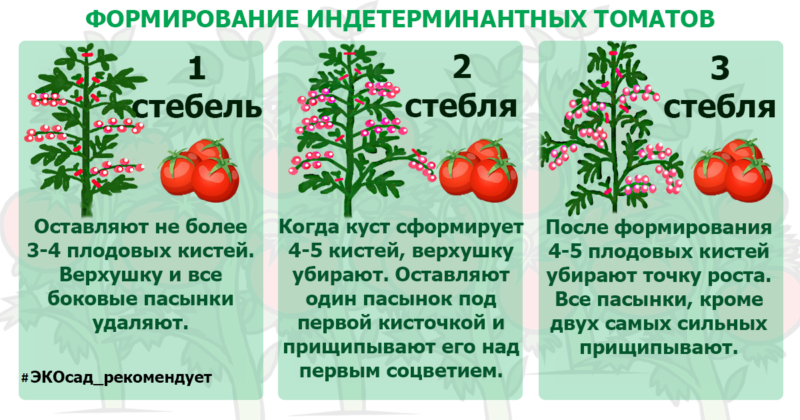На відміну від среднерослих (детермінантних сортів) помідорів високорослі види томатів не припиняють своє зростання протягом сезону. Їх верхівка знову і знову обростає листочками і суцвіттями. Отже, харчування від коренів і фотосинтезу розподіляється на всі зав'язі. І якщо до кінця вегетації з'являться нові зав'язі, рослина буде намагатися направити поживні речовини на їх визрівання на шкоду іншим раніше зав'язався плодам. Якщо рослина вчасно не зупинити, з настанням морозів ми отримаємо багато невизревшіх і, головне, дрібних помідорів.
