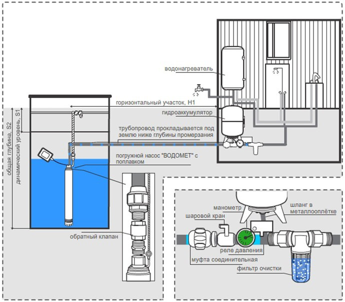 Схема водопроводу з колодязя в будинку