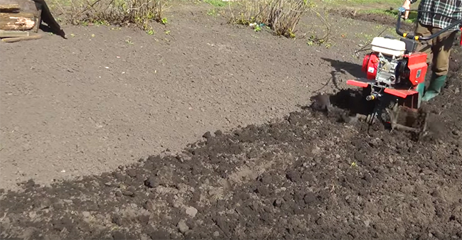 Щоб переорати грунт стане в нагоді спеціальний плуг або фреза. Якщо при роботі утворюються великі грудки, то їх рекомендується розбивати тим же мотоблоком або граблями. Хоча гарне пристрій дозволить виконати всю роботу без додаткових дій.